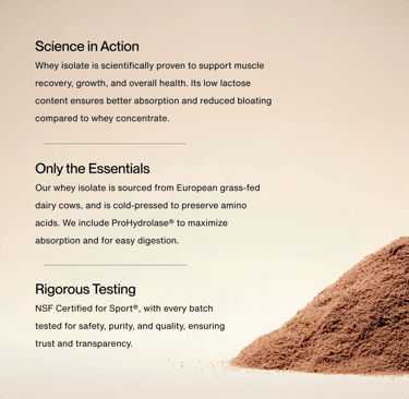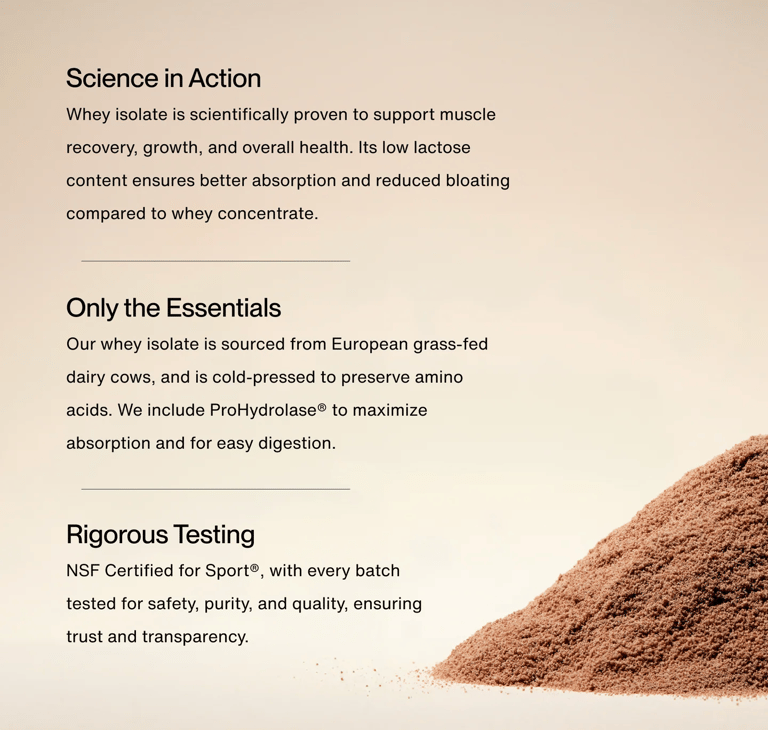Sourcing: They prioritize high-end ingredients, such as sourcing creatine from Creapure® from Germany rather than lower-cost alternatives, and their whey protein is sourced from grass-fed dairy cows in Europe, ensuring they have no hormones, steroids, or rBST in them.